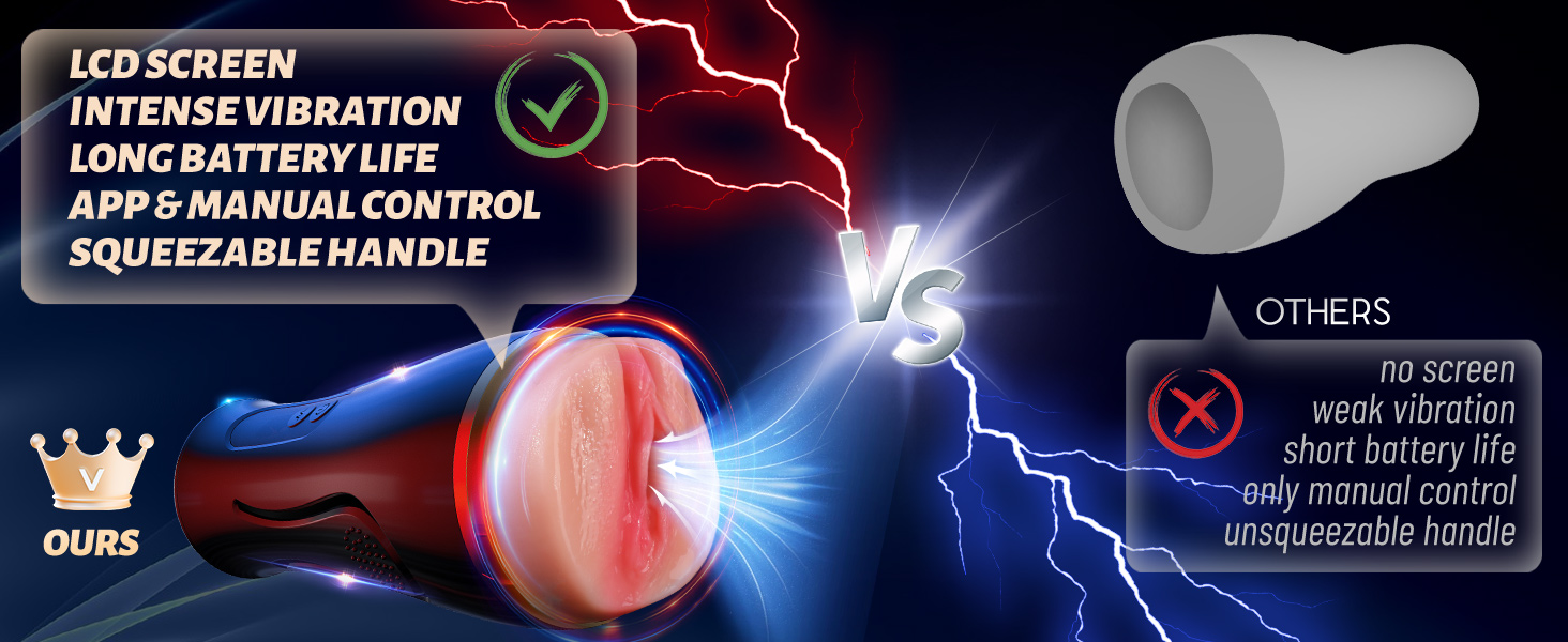 Vibrating Male Masturbator Sex Toys – 7.5″ Depth Squeezable App Control Male Vibrator Stroker with 12 Vibrations, Plump